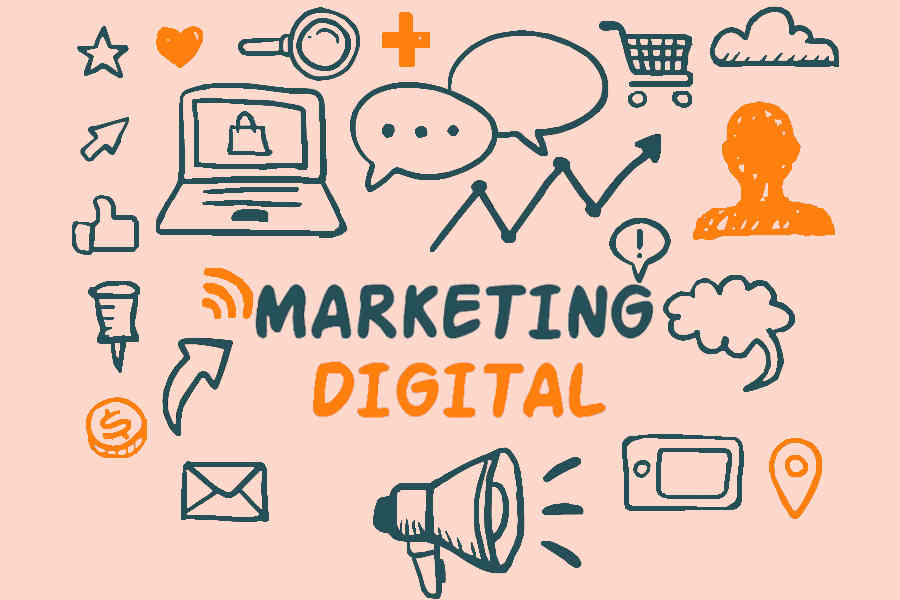 Isso inclui ações como publicidade online, criação de conteúdo para redes sociais, marketing de conteúdo (SEO) e e-mail marketing.